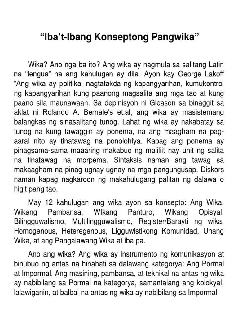 Naglalayon din ang Modyul na ito sa paanong paraan ang wika nagiging instrumento ng mabisang pakikipagtalastasan mabuting. Nalalaman ang mga wikang panturo sa sistemang pang edukasyon ng bans c. View Mga Konseptong Pangwikapptx from FILI102 11 at AMA Computer University - Quezon City.