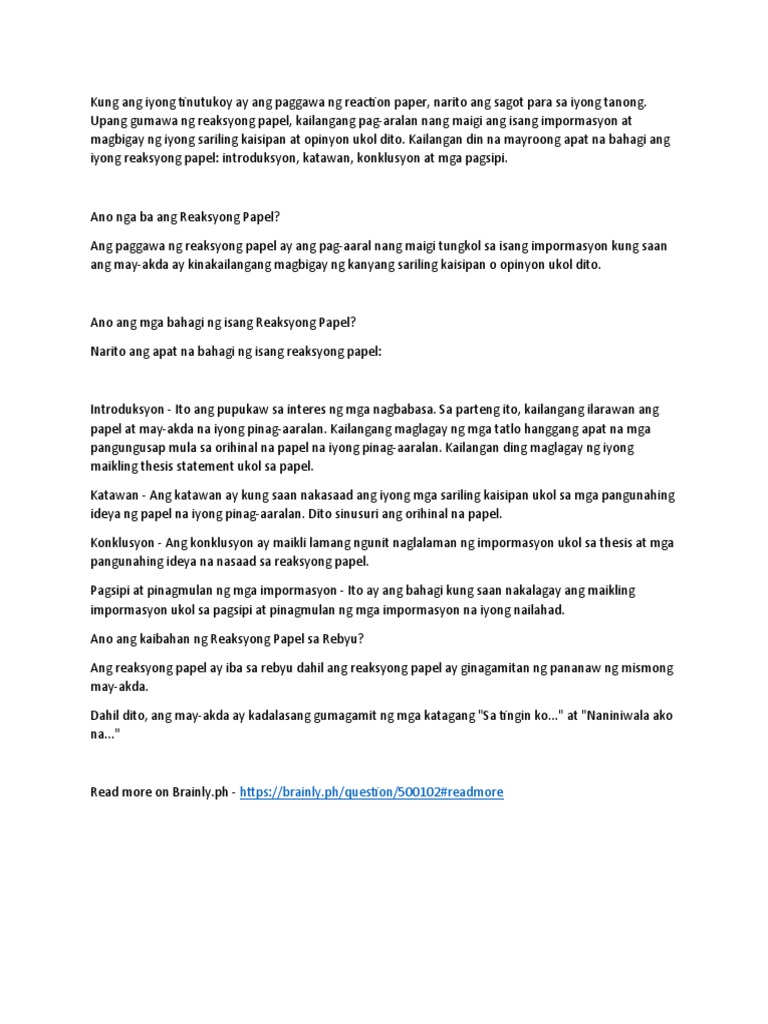 Ano ang kahulugan ng reaksyon paper. No more untied shoes. Villamin et al 1994. Ano Ang Reaksyon Mo Sa Pandemya.