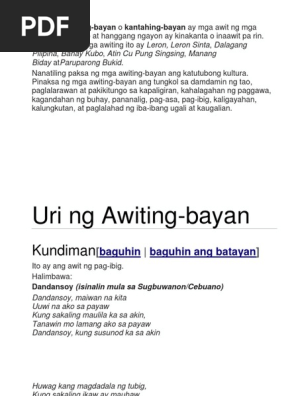 Ang awiting bayan ay isa sa mga kultura na pinangalagaan mula sa ating mga ninuno. Kumintang p- awit ng pakikipagdigma 3. Ang bulong ay isang.